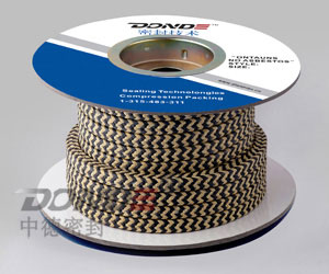 芳纶交织黑四氟盘根以芳纶纤维和黑四氟为原料采用特殊工艺混合编织而成,高强度的芳纶材料交织在盘根里面,使产品更耐磨损。是综合了杜邦Kevlar纤维与黑四氟纤维的优良性能,使产品更耐